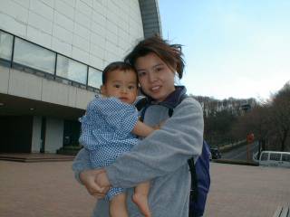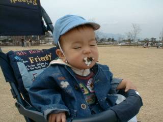 この日も天気が良かったので、近くの公園(年賀状の写真もここで撮りました)に行って、 おにぎりを食べました。 | 2000.04.03 |