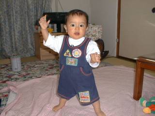 ほら、もう何も無いところで立てるでしょ。 2〜3歩は歩けるんだよ。 |