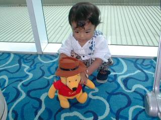 オーストラリアの帽子をかぶったプーさんのぬいぐるみを空港のお土産やでみつけて、 ママが延々悩んだあげく買いました。 |