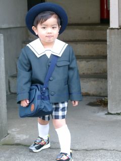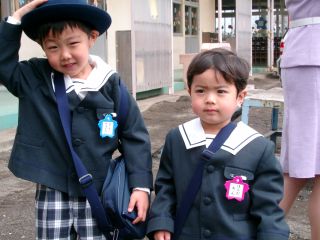 式が終わったあと、同じ社宅のお友達のきょうちゃんと。廉はお疲れモード? |