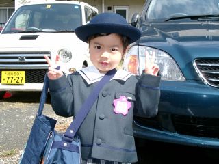 天気予報では入園式当日の天気が悪そうだったので、晴れた日に社宅の前で撮影会をすることにしました。 |