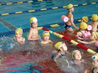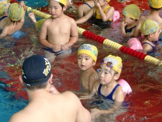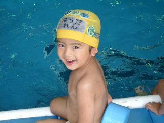 この日はプールサイドに入れたので、デジカメ、ビデオカメラを両手に持って頑張りました。 |