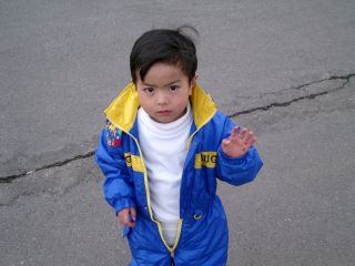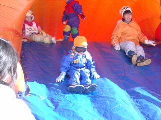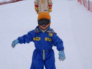| 廉には子供用のプラスチックのスキーで滑らせました。来年はジュニアスキーを用意しないといけないかもしれません。 | |